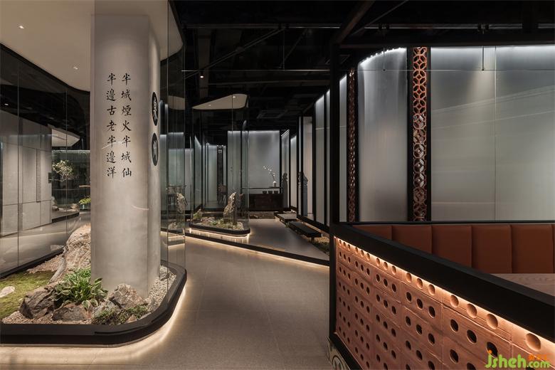 枯石中半遮半掩的一抹綠枝,讓人暫時(shí)脫離喧囂,感受“閩南山水”的神韻所帶來(lái)內(nèi)心的片刻寧?kù)o,以及新派閩南餐飲空間所帶來(lái)的那份靈感!