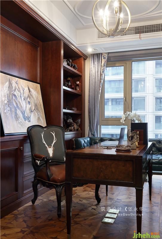 純真的古典空間,加了一組古典藍(lán)的皮質(zhì)沙發(fā)讓主人的書房多了些穩(wěn)重與時尚!