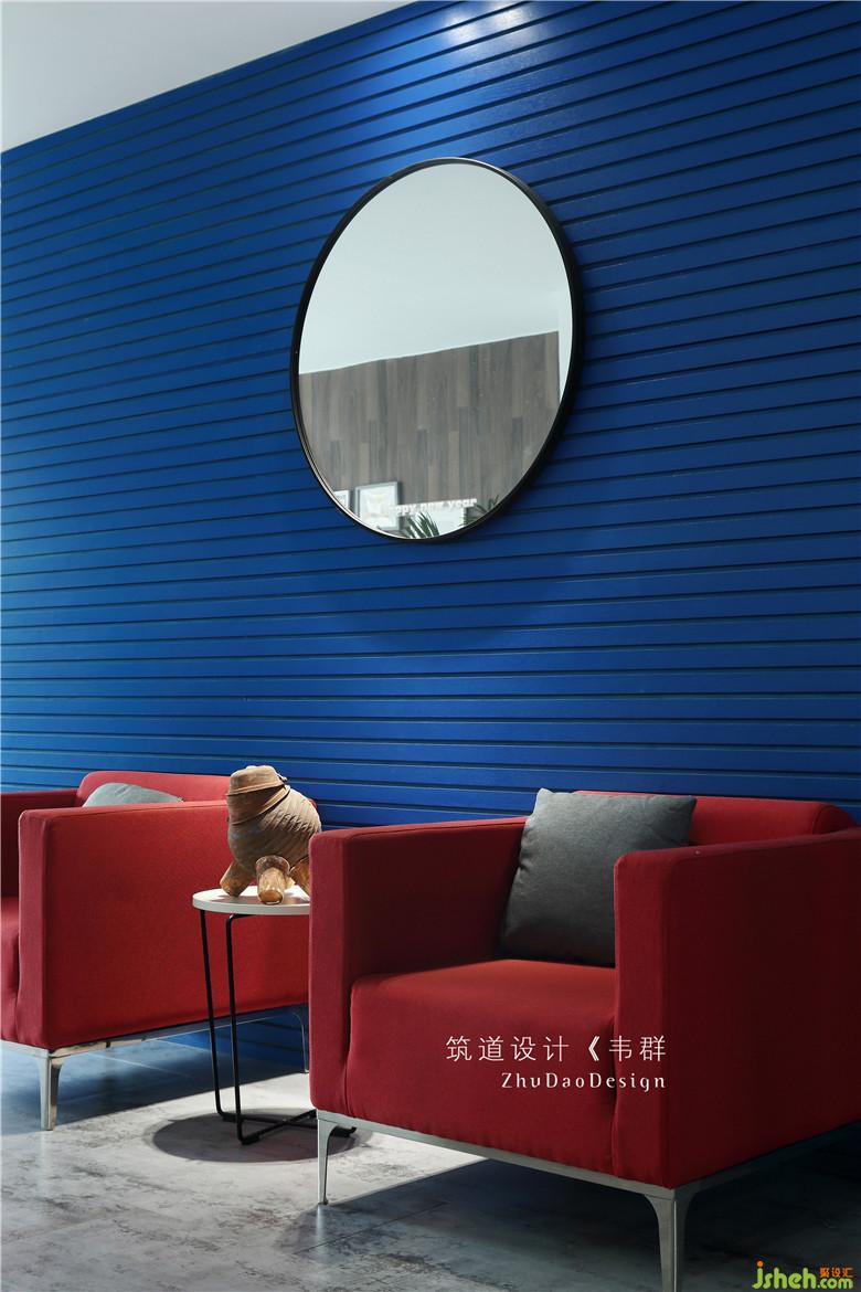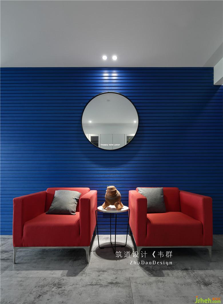 總裁辦公室為新中式風(fēng)格。這樣的風(fēng)格顯然更加適用于來賓訪問及商務(wù)洽談。然而在穩(wěn)重的新中式風(fēng)格中出現(xiàn)的一個(gè)頗具現(xiàn)代風(fēng)格的藍(lán)色茶幾,就會(huì)一下成為躍動(dòng)的視覺亮點(diǎn),為初次見面的人提供了話題,同時(shí)也表達(dá)了空間使用者無法掩飾的幽默風(fēng)趣、不拘一格的性格。