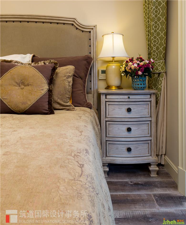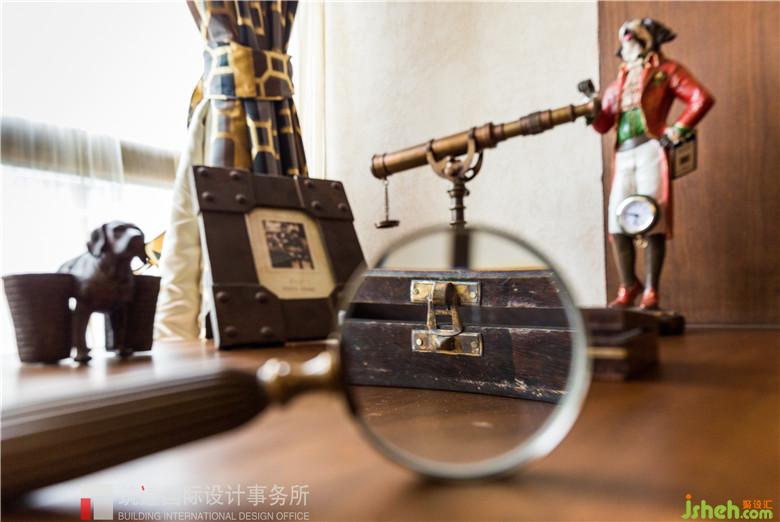 空間色調(diào)以大地色為基礎(chǔ),營(yíng)造了家的溫馨的基調(diào)。軟裝以深淺藍(lán)色幾何圖案沙發(fā)和地毯搭配明黃色抱枕,再佐以經(jīng)典美式風(fēng)格的咖色真皮沙發(fā)及做舊實(shí)木家具,顏色對(duì)比明亮活躍,讓整體空間充滿美式風(fēng)格又不失活力。
