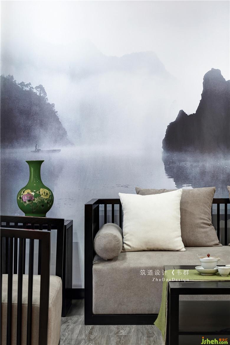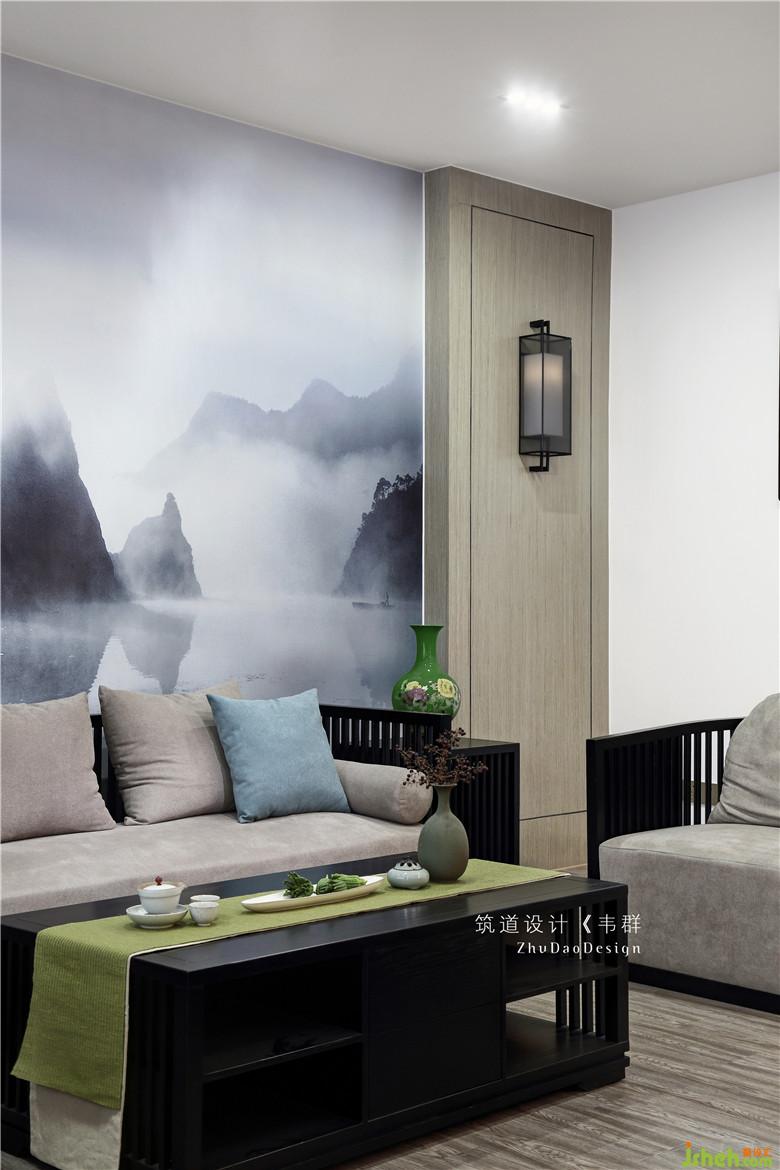 中式風(fēng)格講究的是對稱。簡約自然的木飾面搭配中國風(fēng)情的山水畫墻布,穩(wěn)重、高雅的基調(diào)一下子奠定了整個空間。