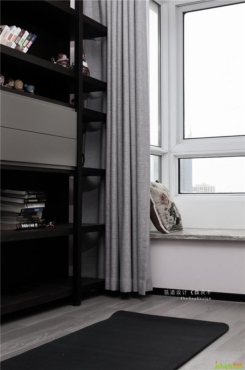 化繁為簡(jiǎn)的護(hù)墻處理,黑與白,面與快的碰撞,讓空間體驗(yàn)感更加強(qiáng)烈,也體現(xiàn)了年輕人對(duì)生活的干練果斷。
