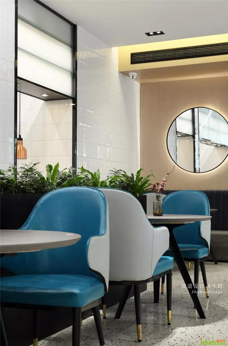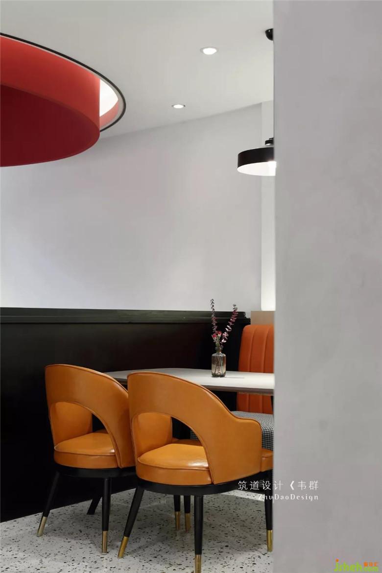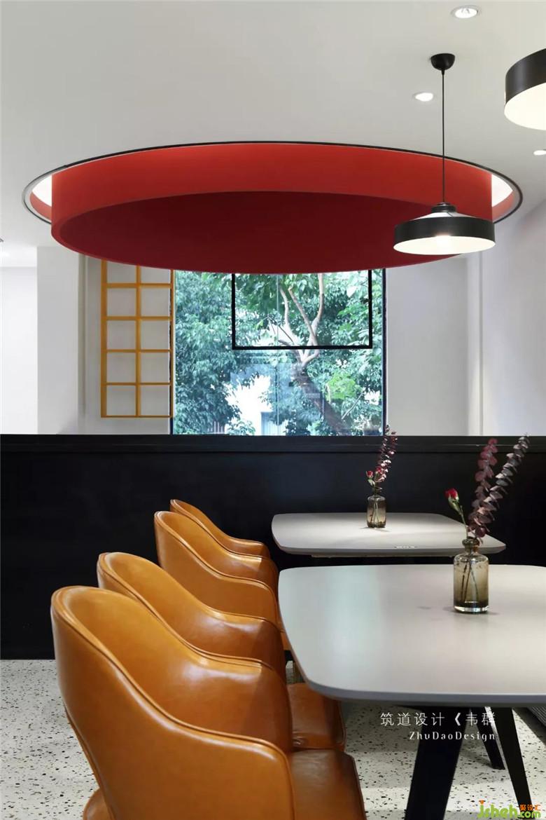 主要的用餐區(qū)都集中在二樓。利用窗邊結(jié)構(gòu)的凹凸關系,放入不同餐位的桌椅,很好地融進窗邊,再輔以整幅落地窗,使得最大限度地納入采光,好似有放大空間的效果。