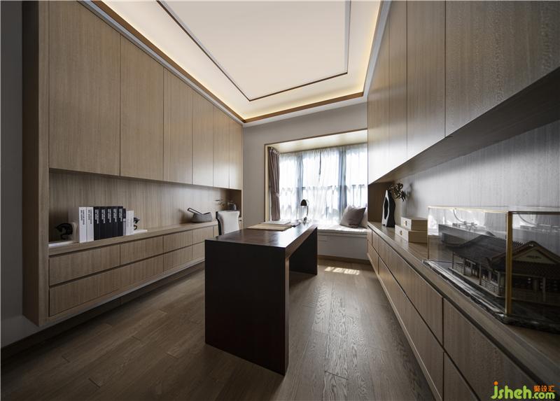 一旁的書房收藏室則以沉穩(wěn)為主基調,兩側整面墻柜兼具功能、特色與美觀,擺放著主人從世界各地收回來的心儀藏品,整個空間在不經(jīng)意的筆觸中,將低調奢華的高貴感勾勒而出。