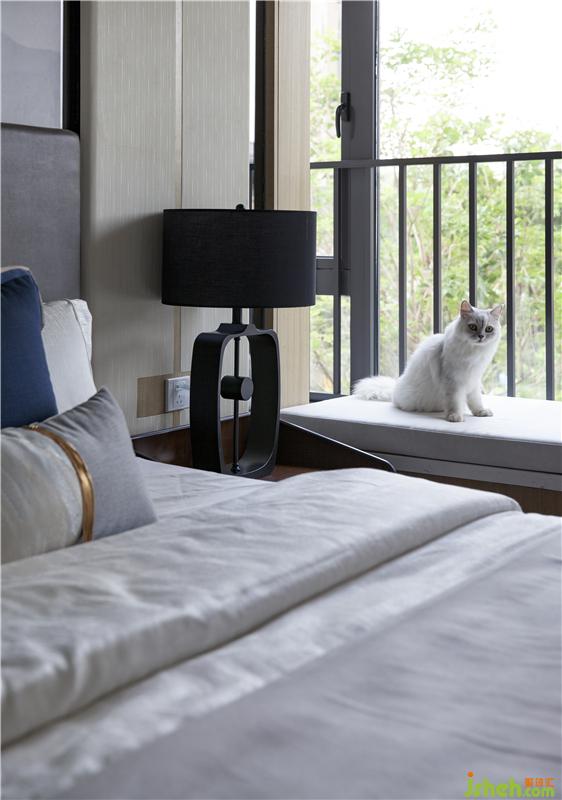主臥以藍灰色為主調,原木地板配襯寶藍色羊毛地毯,營造悠然嫻雅的氛圍。墻身飾上具質感的暖灰色壁紙,靜穆的藝術氣質與細膩的感情于其中悄然生發(fā),點亮居住者的精神世界。次臥延續(xù)了暖色的基調,使得空間調性具有連貫感與藝術美。床靠背景墻以暖色捫布飾面,輔以同色系地毯及家具,為房間注入溫馨舒適的感覺。裝修公司