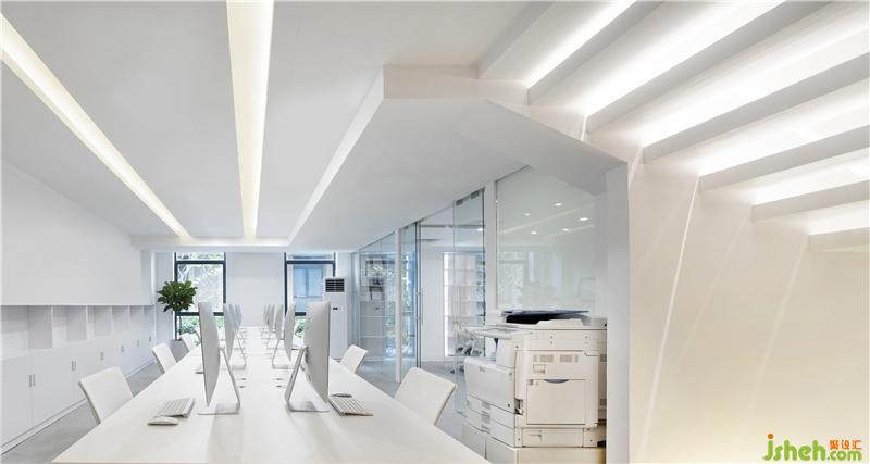 室內(nèi)的交通,將垂直交通作為整個空間中重要的溝通協(xié)作工具。通透的空間隔斷,組成以少勝多的空間虛實關(guān)系,構(gòu)成有序,自成體系。封閉與開敞的關(guān)系,空間的靜止與流動的關(guān)系,空間過渡的關(guān)系,空間序列的開合,抑揚的組織關(guān)系,表現(xiàn)空間的私密性與開放性的關(guān)系等,把人、空間、事件通過設(shè)計組織起空間的場景,將每個單元空間融合在一起,使內(nèi)建筑變得通透。 辦公室設(shè)計