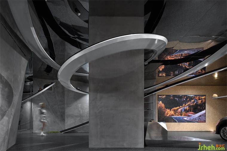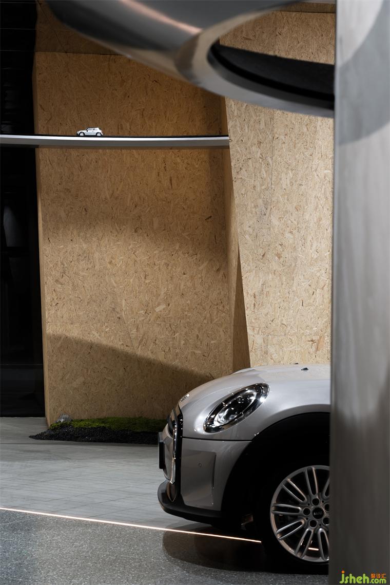 考慮到“MINI車”的巨大單體量,展廳的動線需要保證汽車在其中能夠靈活挪動,展廳設(shè)計(jì)所以跑道的高度和走向設(shè)計(jì)具有一定的限制性,并且跑道所帶來的視覺效果也要納入考量。