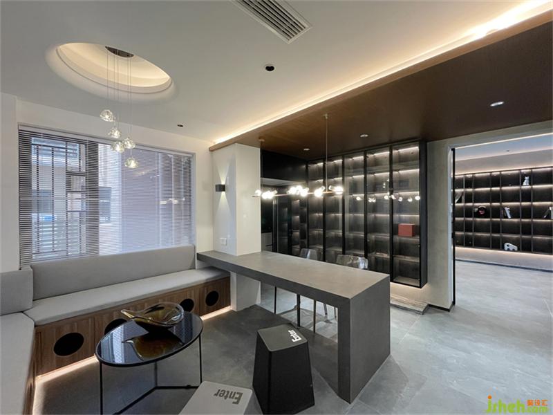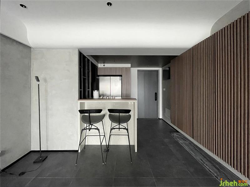 室內(nèi)設(shè)計(jì)入口鞋柜的側(cè)邊做了一排格子展示柜,方便展示主人一些精致的手辦,同時(shí)也因?yàn)槭洲k獨(dú)有的時(shí)尚魅力讓人一進(jìn)門就有種與眾不同的而感覺,這也是入口的儀式感。