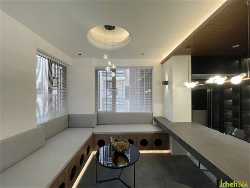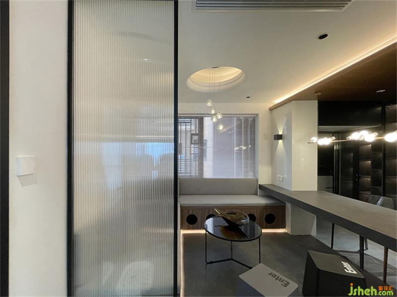 室內(nèi)設(shè)計(jì)推拉門(mén)形成一個(gè)面,延長(zhǎng)推拉門(mén)暗藏軌道做成燈帶形成線(xiàn),線(xiàn)與面的結(jié)合,面于線(xiàn)上移動(dòng),同時(shí)在電視背景墻頂上設(shè)計(jì)一條平行燈帶形成兩條相互平行的長(zhǎng)線(xiàn),既解決了照明問(wèn)題,增加了空間的氛圍感,也讓整個(gè)空間多了一分張力。