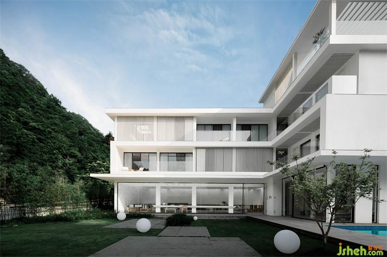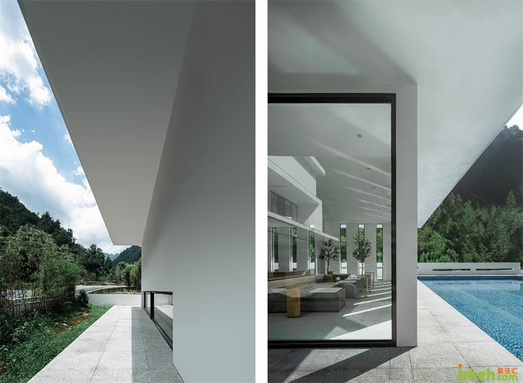建筑與室內(nèi)由單純的幾何體構(gòu)成,靈動(dòng)穿插,酒店設(shè)計(jì)室外向室內(nèi)滲透,室內(nèi)向室外溢出,二者互相融合,邊界消弭。