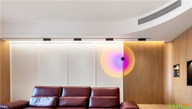 設計師結合業(yè)主的實際需求,考慮到未來兒童玩耍時的安全性,對吊頂和立面進行了弧形處理,弱化了梁的存在,空間更加柔和且有區(qū)域感。不同的弧形在空間內相互映襯,圓潤的線條帶給居者視覺上的舒適度。
