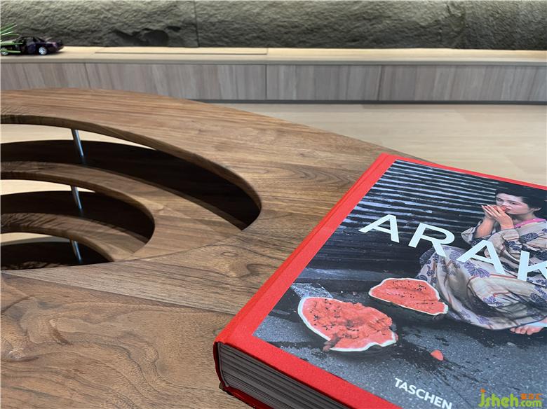 The exquisite wood facing of TV cabinet is partly mixed with the texture of stone, forming the contrast between coarse and fine.