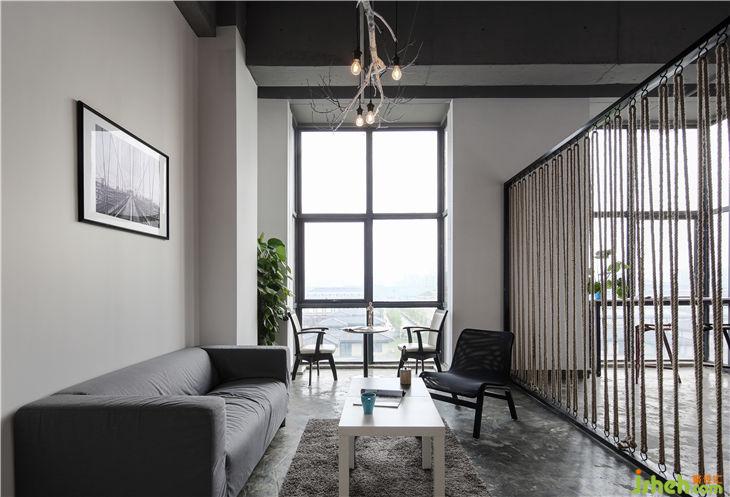 宜家的灰色克利帕沙發(fā)搭配黑白兩色混搭的克拉克邊桌,吊頂部分用廢棄的樹枝噴白處理,配合復(fù)古白熾燈,滿足性價比和裝飾效果。設(shè)計公司