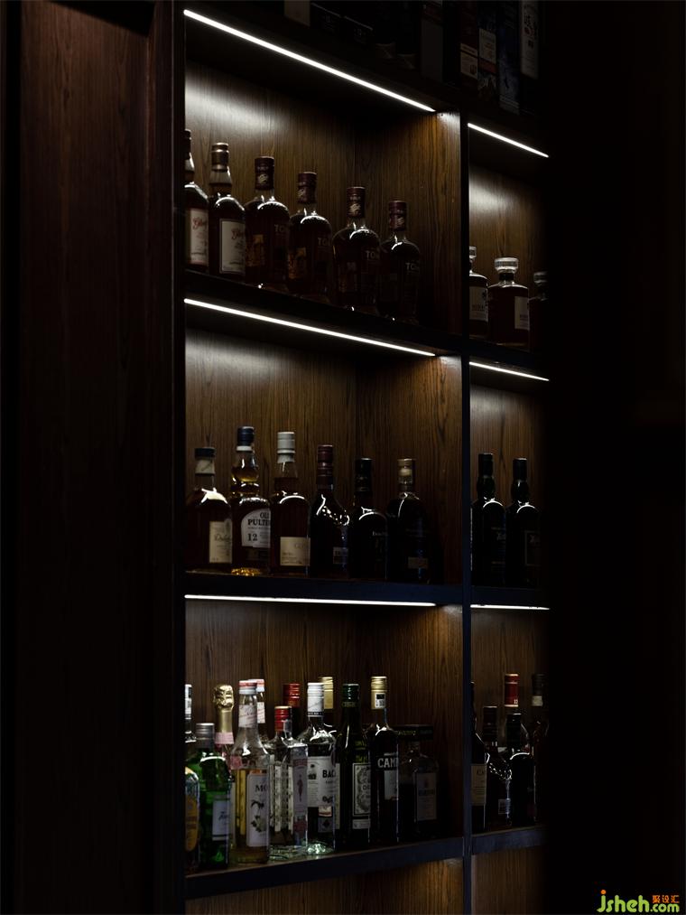 我們首先調(diào)整了樓梯及動(dòng)線布局。半高的實(shí)木護(hù)墻從入口延伸至樓梯間隔斷,餐廳設(shè)計(jì)而塊狀陣列的實(shí)木玻璃隔斷則縱向延伸至頂部天花,同樣一種形式演變的不同區(qū)間不同材質(zhì)的碰撞,在變化與統(tǒng)一中尋求平衡,共同構(gòu)成空間的基調(diào)。