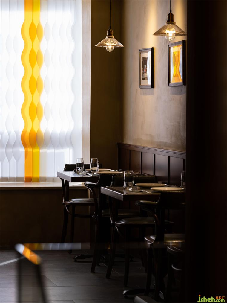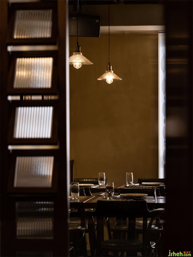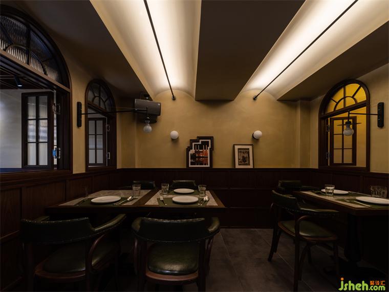 二層作為主要的客坐區(qū),20米長的南北開間被設(shè)定為4個(gè)層次,承擔(dān)獨(dú)立客流的散座區(qū),緩沖區(qū)樓梯平臺(tái)及玄關(guān),卡座區(qū),以及相對獨(dú)立的閉合空間,不同的空間可以應(yīng)不同的使用要求而作出場景的變化。餐廳設(shè)計(jì)在設(shè)計(jì)定調(diào)上充分考慮餐廳客群的年齡層,整體風(fēng)格及色調(diào)避免年輕的網(wǎng)紅化,同時(shí)也防止過于沉穩(wěn)而顯得老氣。