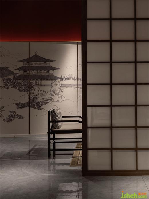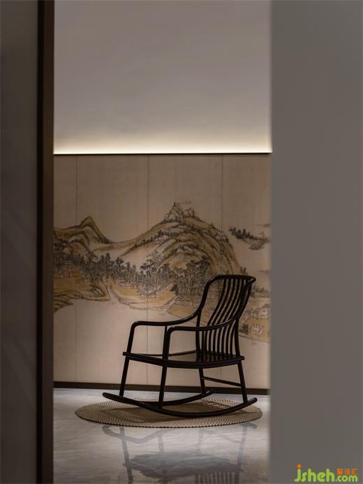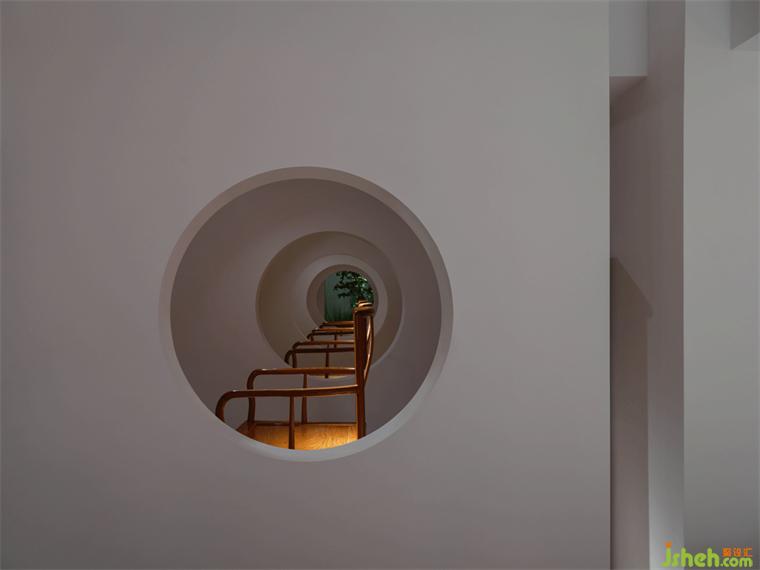 “線構(gòu)”是設(shè)計(jì)師為展廳定下的第三個(gè)主題。紅木家具采用榫卯斗合,蘇素明式非遺傳承館設(shè)計(jì)在結(jié)構(gòu)方面不用釘,不用膠,自成一體。每一件都像是一組精典的建筑組合。