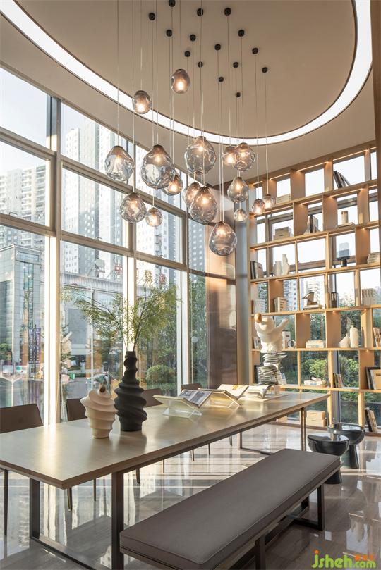 南寧售樓處設(shè)計(jì)從頂部垂下大小不一的球形吊燈,于孩子而言,可以激發(fā)無限想象空間,那是宇宙星球,那是云,那是天空。兒童區(qū)配置玩偶、積木、繪本、益智玩具......等,將閱讀和玩樂功能合二為一,創(chuàng)造可以自由釋放孩童天性的玩樂園。