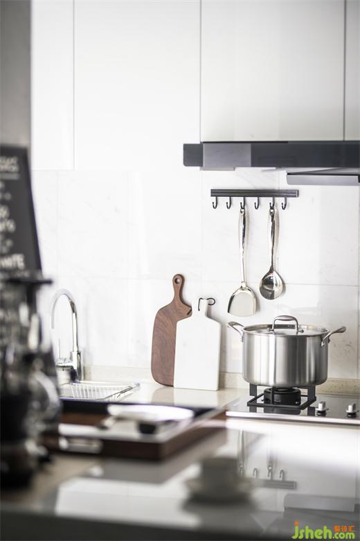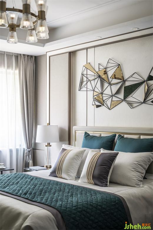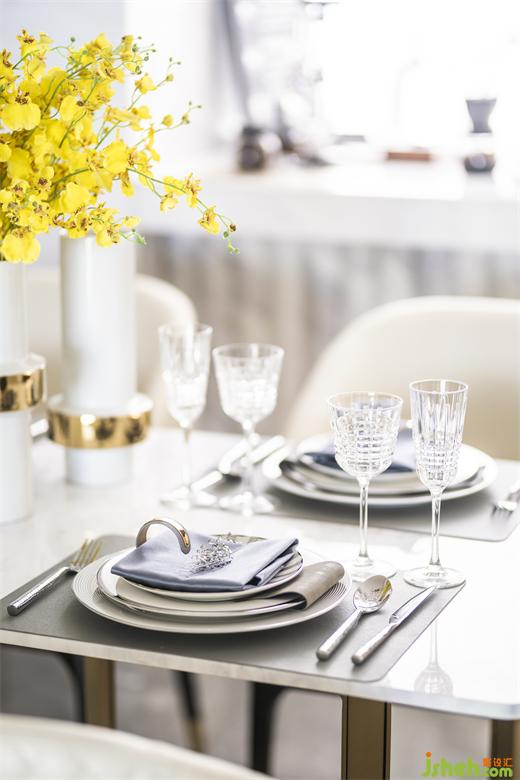 開放的客餐廳、廚房,空間更寬敞明亮,動性亦更流暢。山水抽象畫,流動的靈性,使空間更具層次及藝術(shù)格調(diào)。晶瑩剔透的水晶燈,精致的餐具擺飾,經(jīng)典時尚的格紋,無一不在宣示品質(zhì)的生活追求。此外,花飾朝氣蓬勃,樣板房設(shè)計不僅滿足女主的喜好,亦為空間注入自然活力。