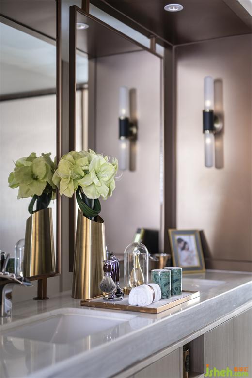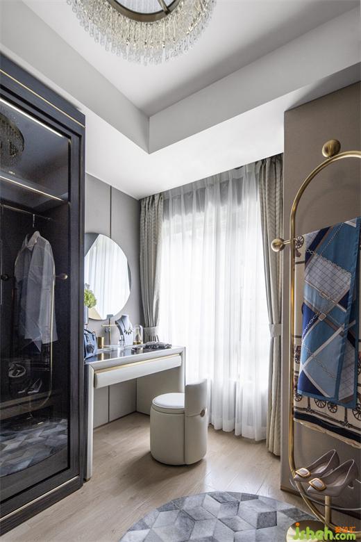 衣帽間格調(diào)同樣溫馨,又是設(shè)計師一處時尚之作。時髦的絲巾、高雅的單鞋、優(yōu)美的鮮花,足見屋主對生活的熱愛和品質(zhì)追求。