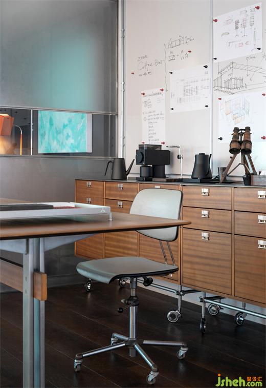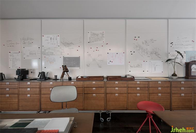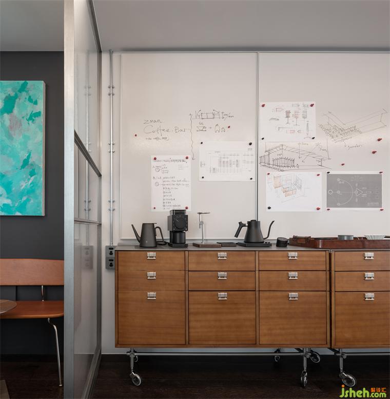 上海辦公室設計在通風的開啟扇上植入了較精致小巧的五金結(jié)構(gòu)支架和滑輪