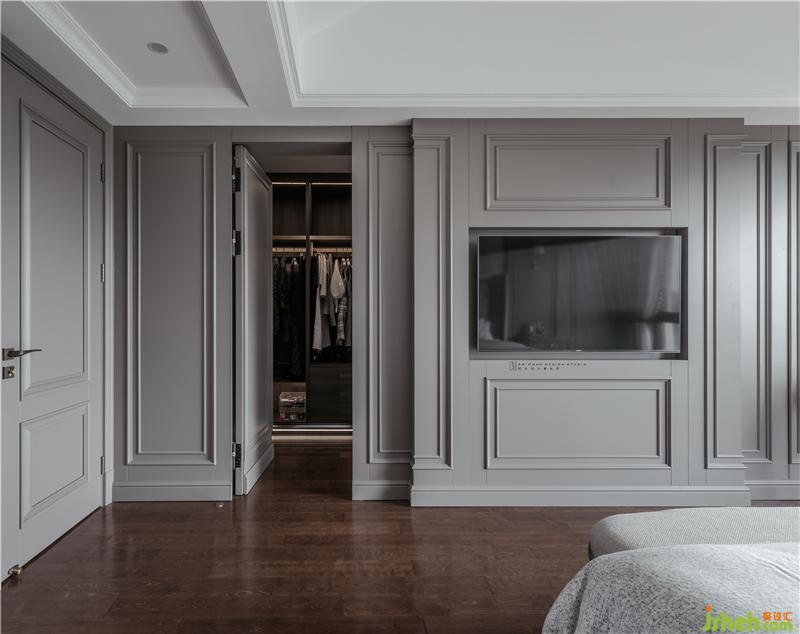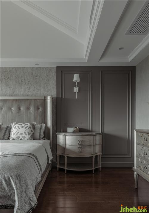 依然延續(xù)了灰色護(hù)墻板,臥室家具的低調(diào)華美,凸顯出宮廷貴族氣息;別墅裝飾