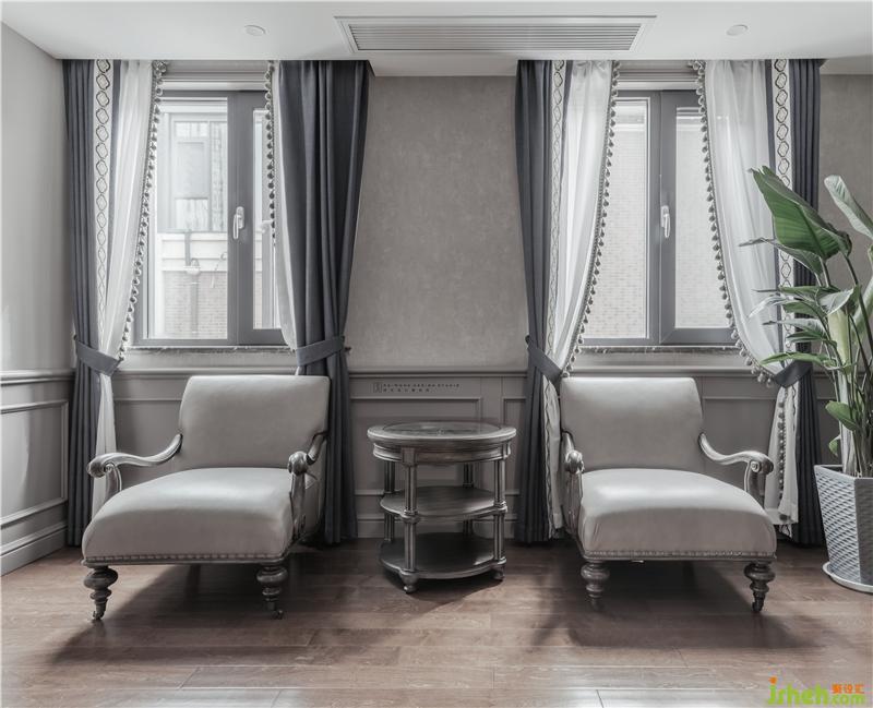 美式布藝沙發(fā)暖化了整個(gè)空間,浪漫柔軟的窗簾;
