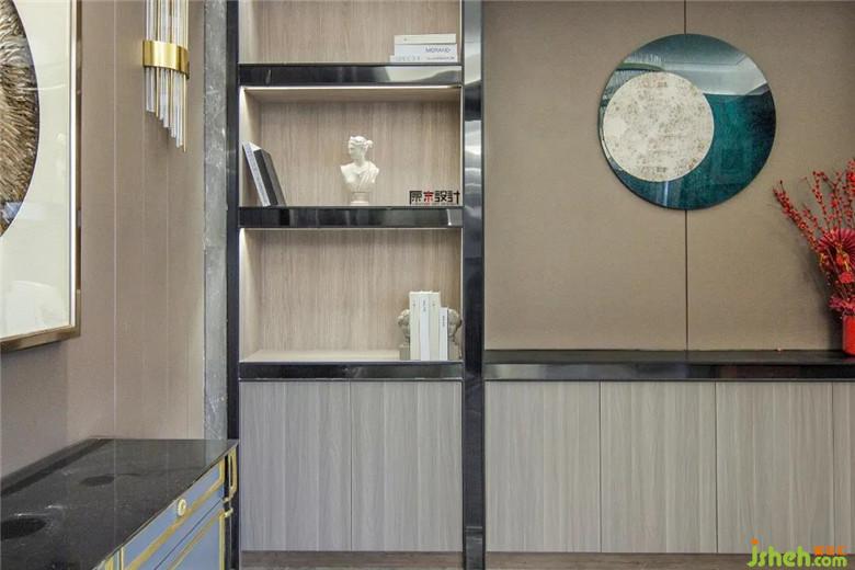 ▲ 餐廳是別墅裝飾儀式感的美好體現(xiàn),黑胡桃木桌面、精美的花瓶與酒杯共同烘托熠熠生輝的怡人氣氛,展現(xiàn)溫馨雅致的生活情境,在材質(zhì)的紋理、區(qū)域的交界、線面的分割、燈光的溫度和家具顏色的變化上,都可見設(shè)計師的巧妙用心。