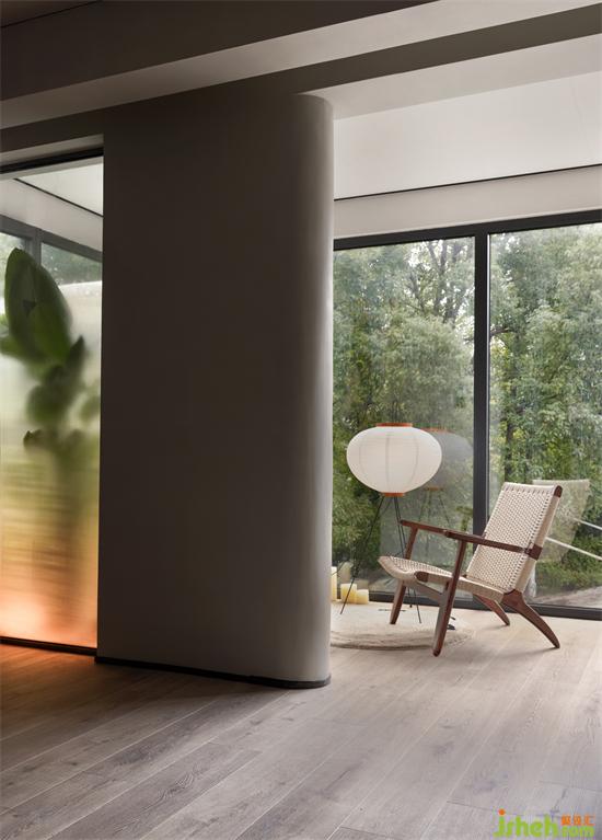 宣紙色的空間如畫卷一般,鋪設(shè)了空間質(zhì)地綿韌、光潔如玉的基色,點(diǎn)點(diǎn)墨暈,翡翠色與硃磦色以點(diǎn)綴的形式室內(nèi)設(shè)計(jì)師出現(xiàn)。