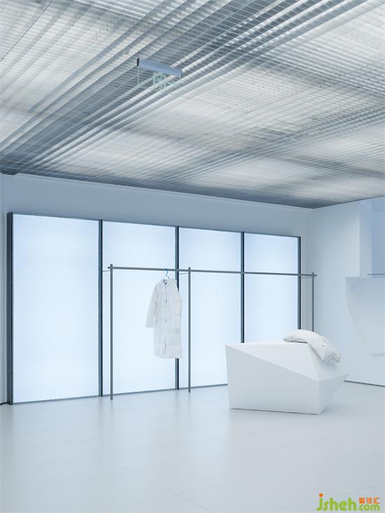 空間所表達(dá)的不是冰冷,而是冰面下的靜謐。平面與鏡面的交互,上海專(zhuān)賣(mài)店設(shè)計(jì)將有限的視覺(jué)空間向外無(wú)限延伸,人們的想象空間也被帶到了另一個(gè)未被探索過(guò)的世界。