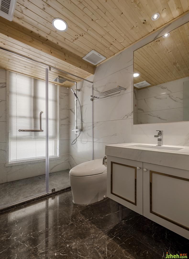 主要材料:柚木實(shí)木片、閃電灰石板、藍(lán)金沙石板、黑鏡、墻布