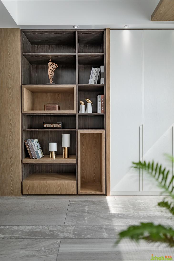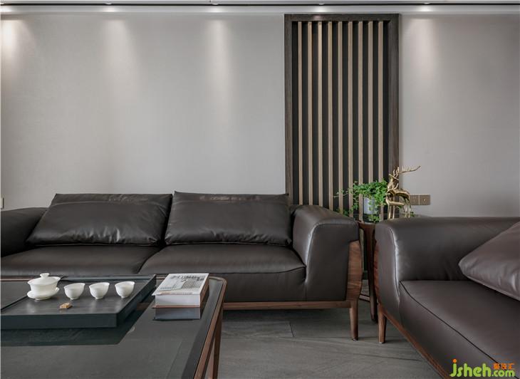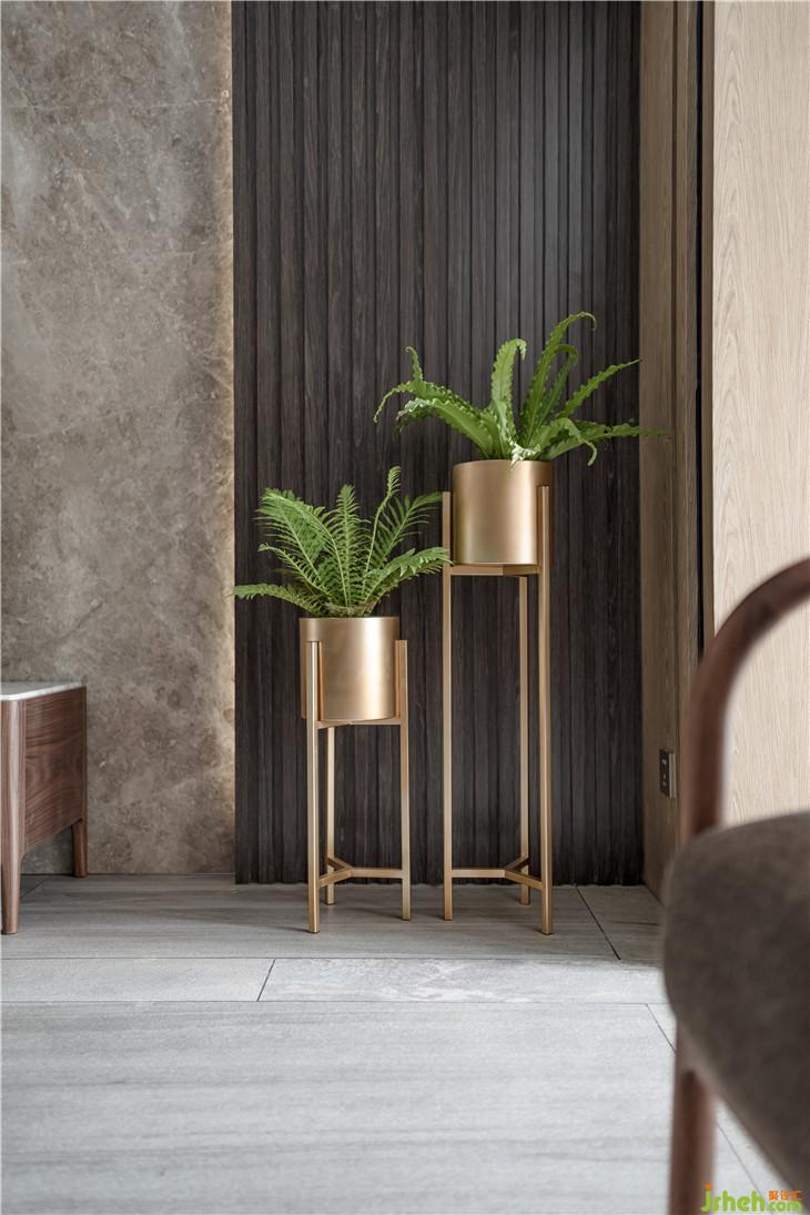 不同木色凹線(xiàn)造型、皮革布包自然拼接的留線(xiàn)、金屬質(zhì)感的窄框線(xiàn),各自特有的色彩質(zhì)感為空間增添了一抹亮色,突顯出房間裝飾的精致感。