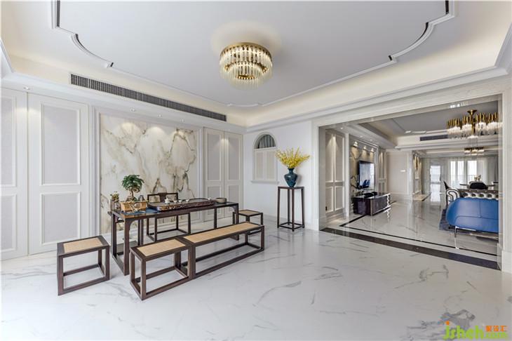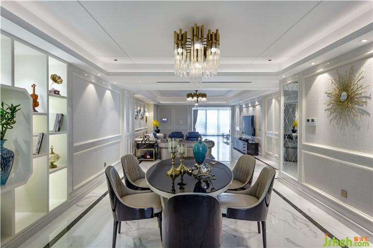 本案以白色為基調(diào),在裝飾上進(jìn)行了精雕細(xì)琢。在保留了傳統(tǒng)歐式風(fēng)格元素的基礎(chǔ)上,將整體設(shè)計(jì)實(shí)現(xiàn)了化繁為簡的處理。改歐式繁雜瑣碎的格調(diào),設(shè)計(jì)師用了大膽的手法,精簡材質(zhì),從質(zhì)感出發(fā),強(qiáng)調(diào)對比,打造由內(nèi)而外的優(yōu)雅奢華感。