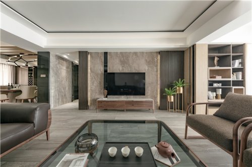 把入戶陽臺空間隔斷拆除之后,使整個(gè)客廳空間顯得更加寬廣、大氣。高級石板的大膽運(yùn)用,尋找強(qiáng)烈的肌理感、高級感。