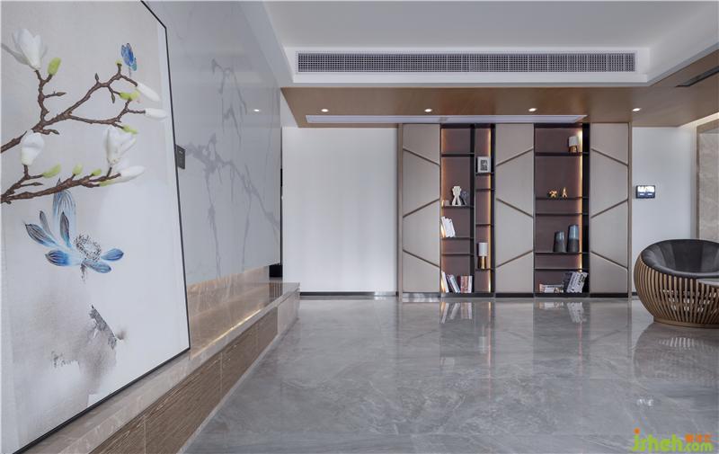 主要材料:科技板、閃電灰石板、人造魚(yú)肚白石板、黑鈦不銹鋼、墻布
