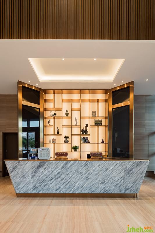 大堂的前臺(tái),是采用了天然大理石黑白鑲嵌,讓空間富有了現(xiàn)代的時(shí)尚感。