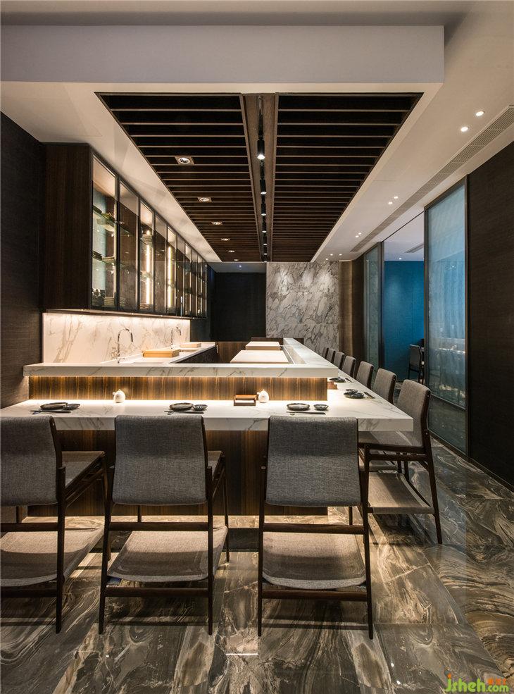 打破以往人們對(duì)日本料理固有的形象,設(shè)計(jì)師以現(xiàn)代簡(jiǎn)約為基調(diào),注入隱晦的日式傳統(tǒng)文化元素,棕色、藍(lán)色與黑色作為空間的主要基調(diào),有別于傳統(tǒng)日式料理餐廳的米白色調(diào)。