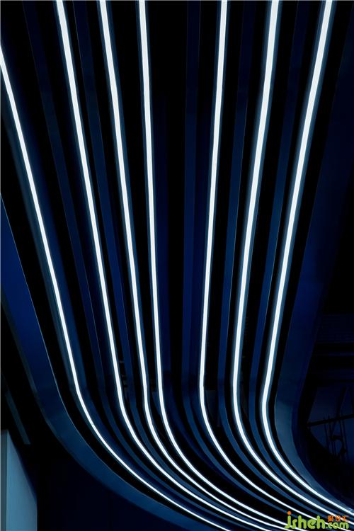 改造后:出風(fēng)口被藏于天花之上,并定制線性、帶狀及圈狀燈具,在創(chuàng)造空間分區(qū)的效果的同時也成為空間的景觀。