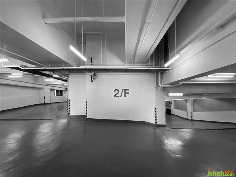 改造前:大面積的灰色地坪漆,易產(chǎn)生視覺疲勞,且地面車行劃線不清晰,導(dǎo)致車輛在車庫中迷失。