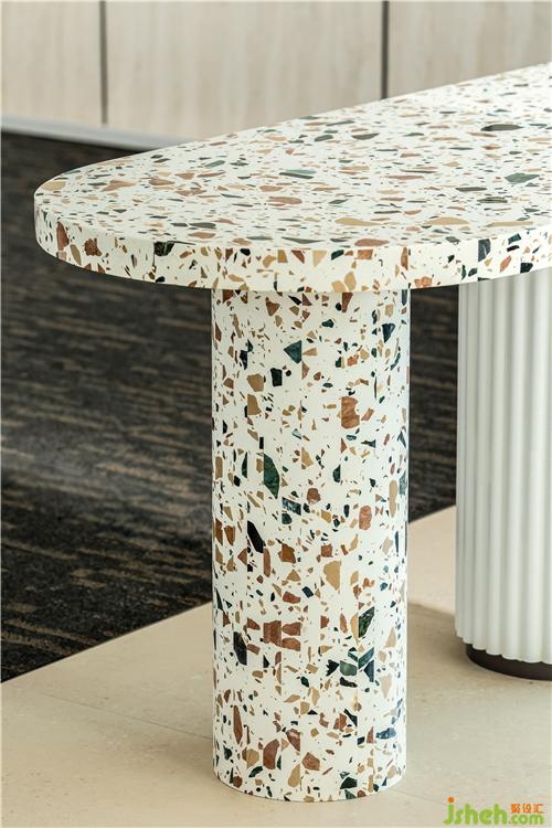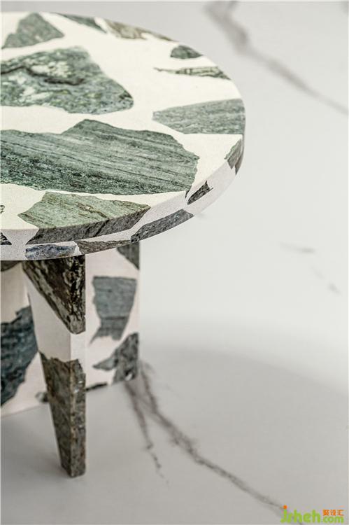 展臺上,一個ASA水磨石設計的矮凳,是OFT對瓷磚不同功能的演繹,瓷磚展廳設計當功能與形式有機結(jié)合,選擇就變成了一次材料探索之旅,矮凳不僅可以作為設計的語言風格去傳承與定義,更是具有品牌價值增量的產(chǎn)品。