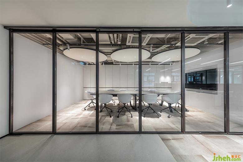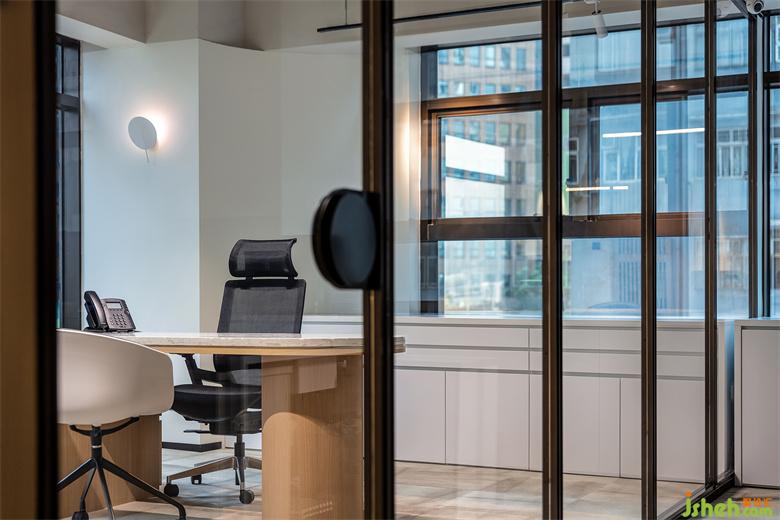 最后,在私密辦公區(qū)中,設(shè)計師用大面積玻璃窗將自然光源引入室內(nèi),透明的玻璃門,讓整個區(qū)域視野更為開闊。