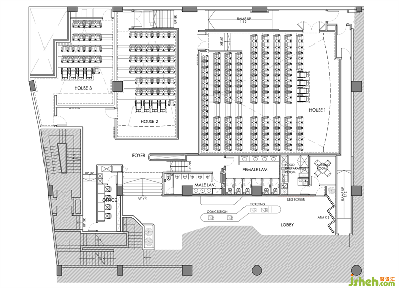 同時(shí),設(shè)計(jì)師基于影藝作為文化消費(fèi)場(chǎng)所而非消遣消費(fèi)場(chǎng)所定位的考量,影院設(shè)計(jì)空間更聚焦觀影本身,而未設(shè)置更多業(yè)態(tài),提升觀影效率。