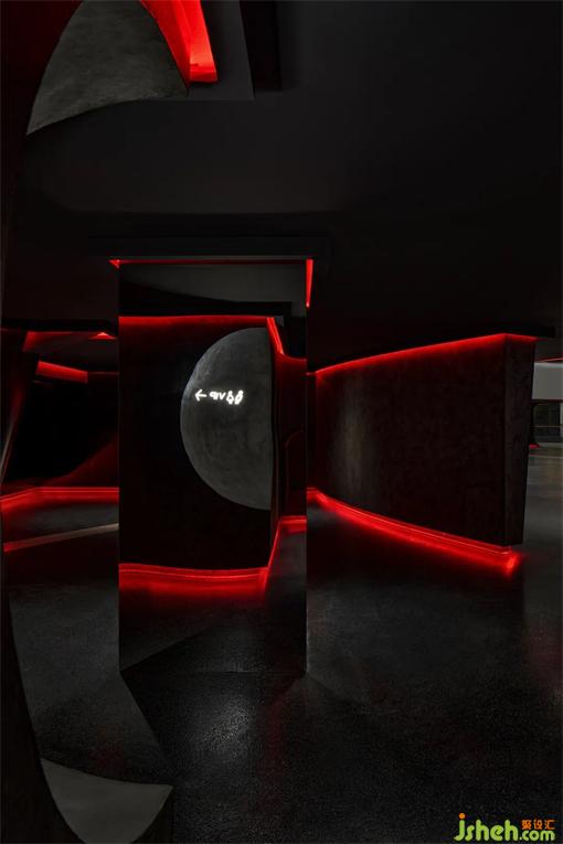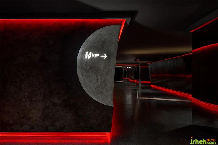 導(dǎo)視標(biāo)識(shí)靈感是一個(gè)凹陷的月球表面,靈感來自平克·弗洛伊德(Pink Floyd)專輯《月之暗面》(《The Dark Side of The Moon》),電影院設(shè)計(jì)師用可以隱藏的暗面,完成這場讓人分不清真假虛實(shí)的視覺游戲。