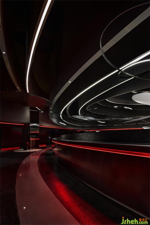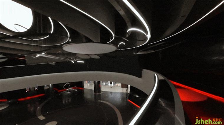 在步入二樓后,電影院設計這段圍繞天體運動的“環(huán)形公路”則試圖在回應這個哲學問題,我們該去向何處?