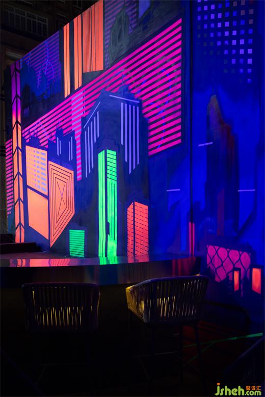 酒吧設(shè)計(jì)隨著虛擬場景的轉(zhuǎn)換,此時(shí)酒精成為多巴胺的催化劑,空間則替代酒精的媒介作用,讓消費(fèi)者可以快速從現(xiàn)實(shí)進(jìn)入到更混沌與失真的狀態(tài)中。