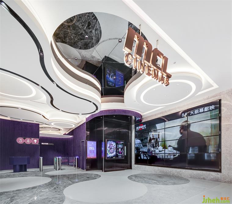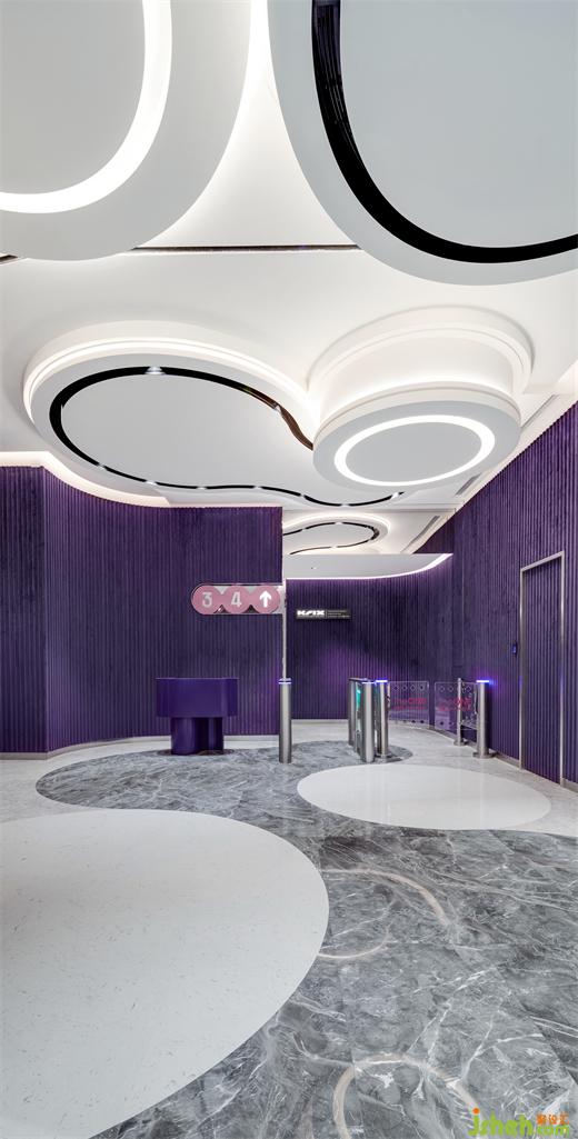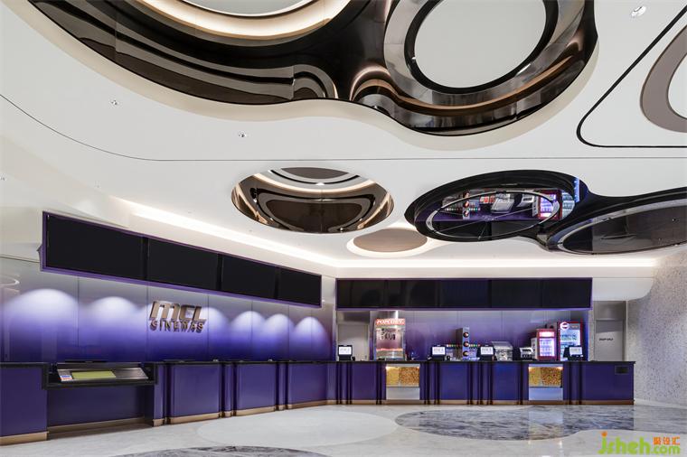 同時(shí),設(shè)計(jì)師還大膽采用紫色作為空間媒介,紫色象征著宇宙的神秘、未知的趣味以及超越現(xiàn)狀的發(fā)現(xiàn),引導(dǎo)觀眾在觀影過(guò)程中沉浸于無(wú)限的想象之中。