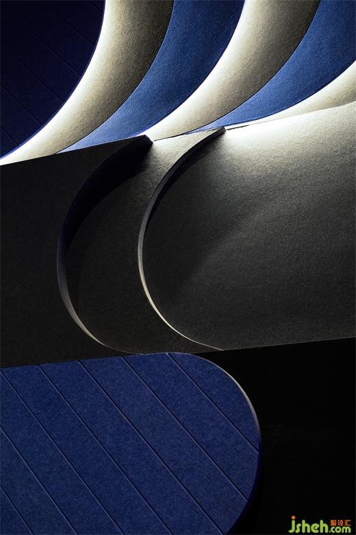 影廳依然沿用水滴元素,藍(lán)色和紫色的造型墻,將我們的意識(shí)與潛力帶到更高的境界。從探索新科技與更浩瀚的銀河,到藝術(shù)性的表達(dá)與精神思考,直覺式的紫色照亮通往未來的道路。