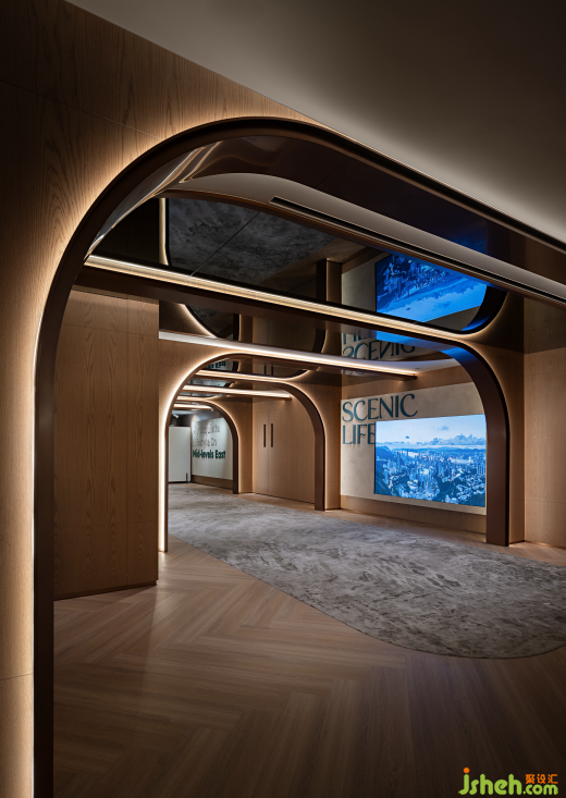 當(dāng)然,沒有什么比一個(gè)具有探索感的長(zhǎng)廊更適合展示品牌故事,于是,主走廊成為本次購(gòu)房之旅的起點(diǎn)。
