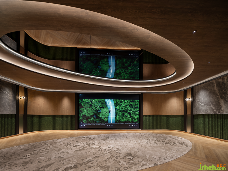 售樓中心設(shè)計(jì)為強(qiáng)化品牌印象,OFT用充滿生機(jī)的苔鮮綠回應(yīng)英皇品牌色,除此之外,設(shè)計(jì)師還希望通過幾種自然色系,傳遞一種低調(diào)沉穩(wěn),且有機(jī)生長(zhǎng)的生活態(tài)度與老錢美學(xué)。