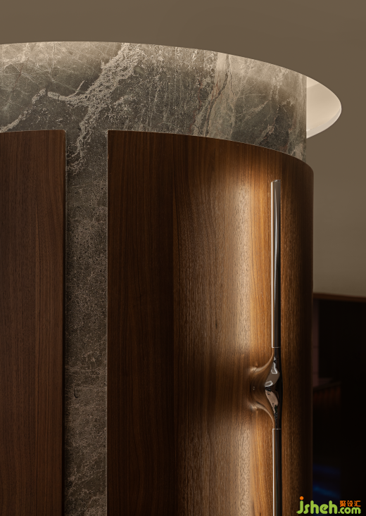 同時,為回應ONE JARDINE'S LOOKOUT的居住理念:尋找都市中的自然棲居。設計師在空間中大面積采用了原始肌理感的木飾面,用象征著肆意生長的樹木,為喧囂都市注入鮮活生命力。