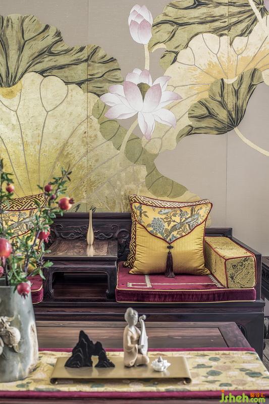 荷花墻布,極具富貴之態(tài)